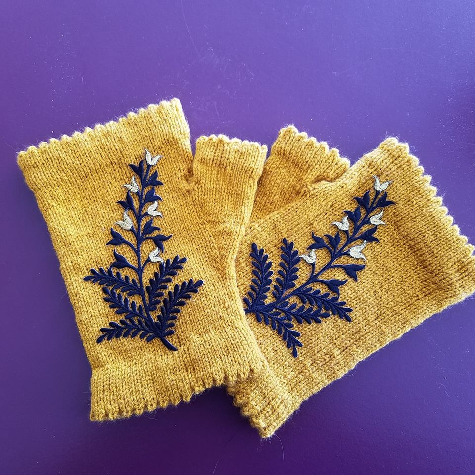 Whether you call it "on a binge" "going through a phase" or "in a rut", I have recently noticed that I tend to knit the type of garment over and over until the "feeling passes." I have gone through many hat binges, as well as socks, baby booties, scarves, shawls, and baby hats. You can even see it on this blog if you go back through the titles.Right now, it's fingerless gloves. And this phase has lasted a while. Right now I am making simple, straightforward gloves so I am put an iron-on applique on back of the hand. I have also been toying with lace cuffs to add a bit of flair.