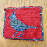 So how perfect is a double knitted potholder with a cardinal on one side and a blue jay on the other. Here is a free pattern for you. Be sure to add two stitches on each side for a border.